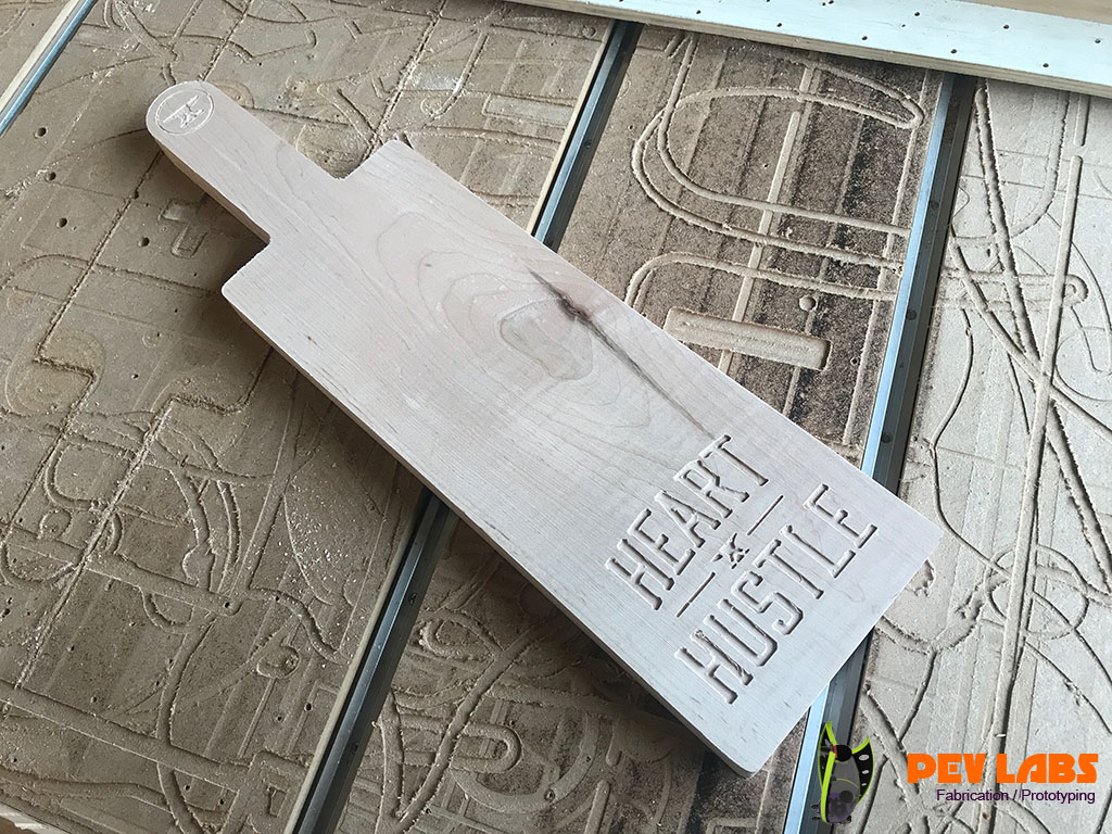 We designed and produced a few production runs of these Weightlifting Press Boards for Heart and Hustle Gym in Los Angles, CA. Project includes Product Design, CNC Milling, CNC Engraving and general Woodworking. These are made of solid hard maple grown and harvested from the eastern side of the United States. The way board presses are used in weightlifting is by Layering seven of the one inch thick boards on top each other during powerlifting training. After a set of reps are complete by the weight lifter one board is removed by the trainer which offers a new one inch lower sticking point. This is repeated until down to one of the boards. The power lifter will start with a full set of lumber between the barbell handle and the chest, working their way way down to one inch between the two. Bench Press Boards allows the lifter to focus on the lockout portion of the lift. The traditional press board method is to glue up five sets of blocks at one inch intervals. This method reduces cost by reducing material significantly and labor modestly. On the second iteration of this product we added the spine and groove to help guide the boards, or to keep them from sliding sideways. If you are in need of branded product production please reach out.