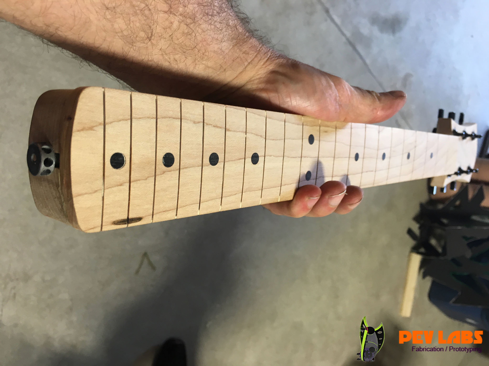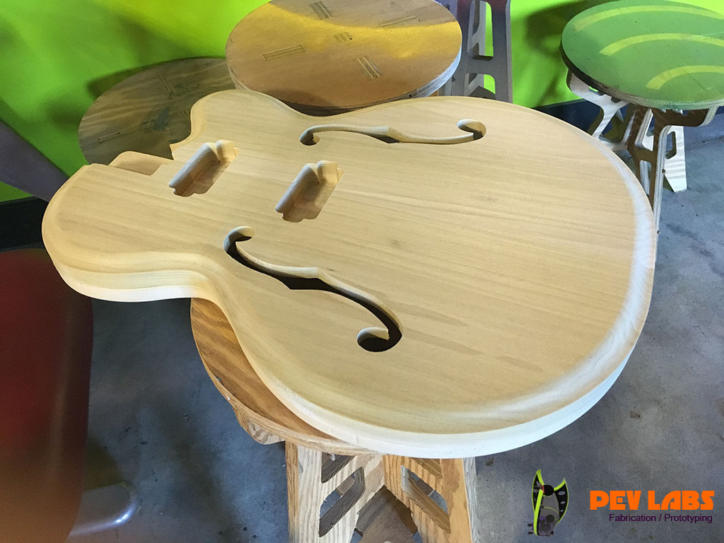 We build design and build electric guitars and purely electronic musical instruments, for fun and client requests. Repairs are also a possibility depending on needs but our focus is on making. We made a few guitars from scratch including our own necks and fretboards. We love neck though construction, though its more cost effected to purchase pre-made necks. Our CNC machines are awesome for getting the fret bar spacing fairly precise when taking this on. We also make electric guitars per your specifications or designs. Milling custom bespoke guitar bodies are fairly straight forward. Information is readily available for lying out various pickups, bridges, tremolos and neck pockets. Also comfortable with Floyd Rose or other modern Tremelo CNC pocketing. Visit our electronics and circuit design page if interested in what goes on beyond our tactile skills. If you are a musical instrument maker and would like parts milled please reach out.